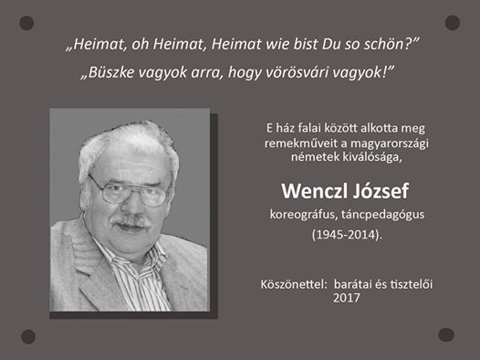 Két évvel ezelőtt hunyt el a kiváló táncos és koreográfus, Wenczl József – hívta fel a pilisvörösváriak figyelmét Fogarasy Attila, a helyi újság korábbi főszerkesztője. Az évforduló alkalmával a pilisvörösvári táncpedagógus tiszteletére emléktáblát helyeznek el a Művészetek Házában, amihez a napokban a képviselő-testület is megadta támogatását.