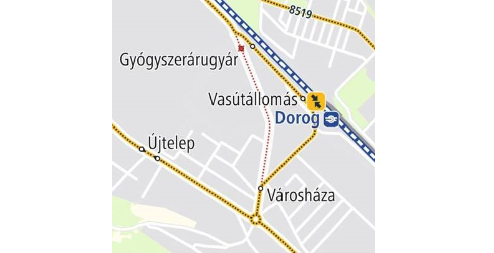 Az új megálló üzembe helyezése miatt a Dorog, Gyógyszerárugyár megállópár új helyre, a vasúti sínek melletti útszakaszra kerül át. Az autóbuszok indulási ideje a módosítás során nem változik.
