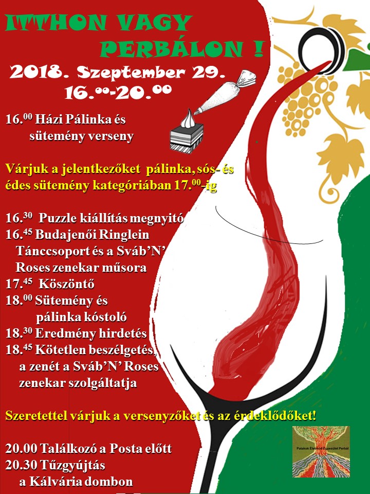 - 16 óra: Házi pálinka és sütemény verseny